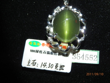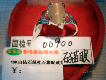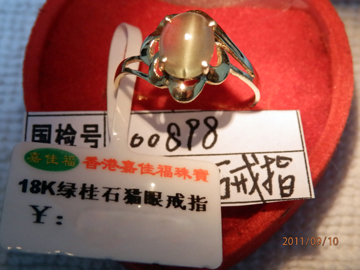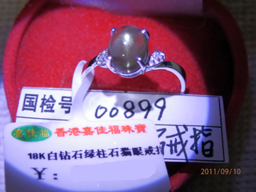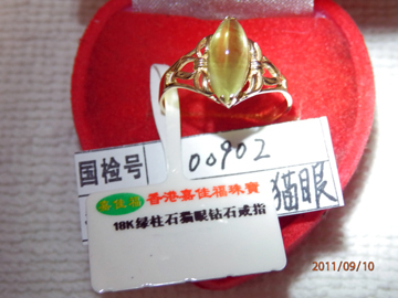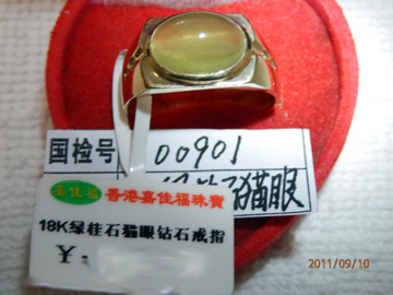 18k 黄钻绿柱石猫眼戒指 价格38000元
